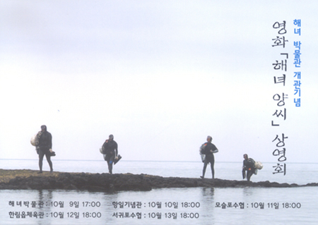 일본국제교류기금 서울문화센터는 제주도의 해녀박물관 개관(2006.6.9)을 기념하여 제주 각 어촌계 해녀와 주민들을 대상으로 재제주일본국총영사관의 후원으로 해녀박물관과 함께 영화 ‘해녀양씨’ 상영회를 개최한다.