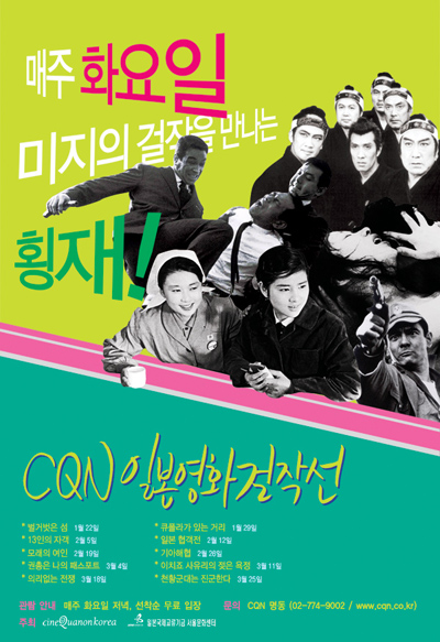 [CQN 일본영화 걸작선]은 씨네콰논코리아와 일본국제교류기금 서울문화센터가 공동으로 주최하는 일본영화 정기 상영회로서, 일본 영화사에 뚜렷한 자취를 남긴 의미 있는 작품들을 발굴, 꾸준히 관객들에게 소개하고 있습니다. [CQN 일본영화 걸작선]은 지난 2007년 9월에 처음 시작, 그 동안 <이마무라 쇼헤이 감독 회고전>과 <스즈키 세이준 감독 특별전>을 성황리에 치른 바 있습니다. 그리고 새롭게 2008년을 시작하는 1월, 1960년대부터 1980년대 사이에 만들어진 다양한 장르의 걸작 총 10편을 엄선, 오는 3월까지 상영을 이어가게 됩니다.