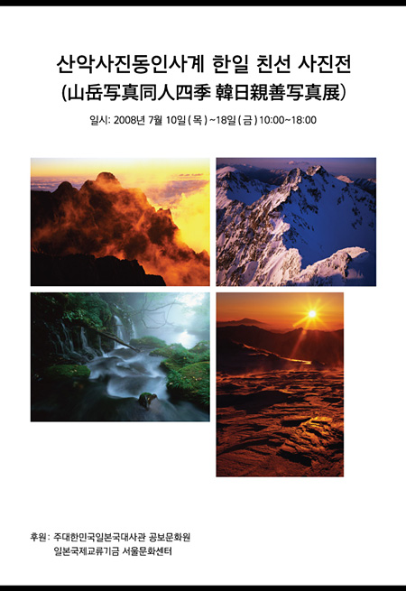 일본의 산악사진동인 사계의 창립 40주년을 기념하는 사진전으로, 일본의 산악과 자연풍경이 담긴 컬러사진과 흑백사진 112점이 일본국제교류기금 서울문화센터와 주한일본대사관 공보문화원에서 전시된다.