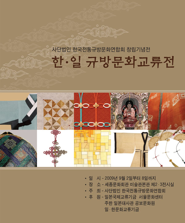 일본국제교류기금 서울문화센터가 후원하고 사단법인 한국전통규방문화연합회가 주최하는 '한일규방문화교류전'이 9월 2일부터 8일까지 세종문화회관 제2,3 전시실에서 개최됩니다.