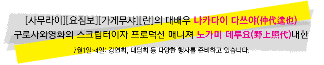 3) 7월 3일(토) 13:00 [7인의 사무라이]상영 후, 노가미 데루요 강연회