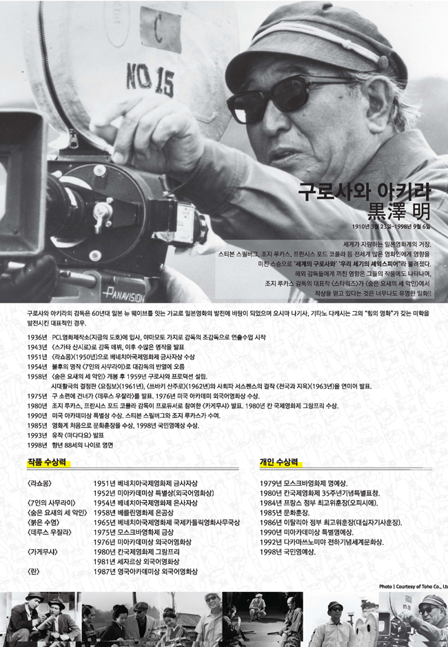 ***본 행사 기간 동안 <구로사와 아키라 감독과 그의 작품세계>를 소개하는 연재시리즈(총6회)를 마련했습니다. 영화감상하시기 전 참고자료로 활용하기시 바랍니다.