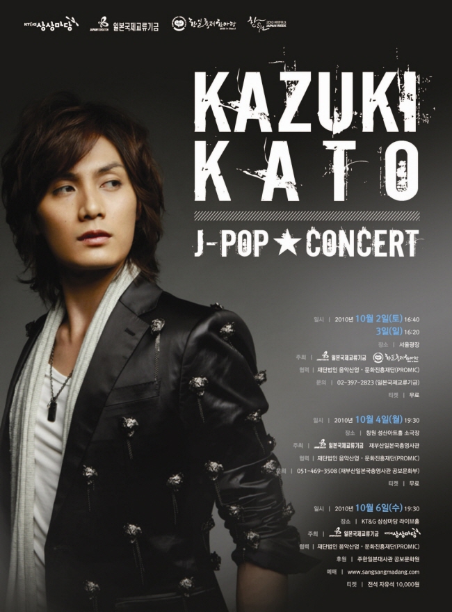 일본국제교류기금은 한일 양국간 문화교류사업의 일환으로 일본과 한국뿐 아니라 아시아에서도 그 실력을 인정받고 있는 가수 겸 연기자인 가토 카즈키를 초청하여 서울과 창원에서 공연을 갖는다.