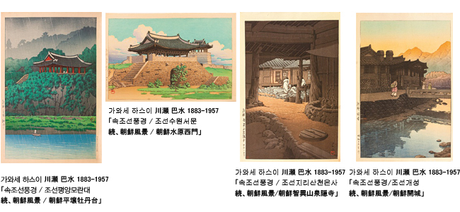 특히 가와세 하스이의 '속(續)조선풍경' 중, '조선평양모란대(朝鮮平壌牡丹臺)'는 초판으로 소개됩니다.
