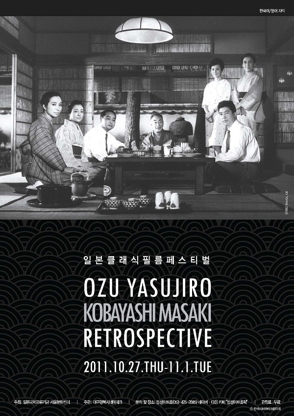 일본국제교류기금 서울문화센터(THE JAPANFOUNDATION)는 일본이 배출한 세계적 거장 오즈 야스지로 감독과 고바야시 마시키 감독의 최고의 명작들만 엄선한 [일본클래식필름페스티벌]을 오는 10월 27일(목)부터 11월 1일(화)까지 대구동성아트홀에서 개최합니다. 이번 상영에는 오즈 야스지로 감독의 대표작 <동경이야기>과, 한국에 처음 소개되는 <고하야가와가의 가을> 등 6작품과 고바야시 마사키 감독의 9시간 34분에 달하는 전쟁 대서사시 <인간의 조건1부~6부>이 무료 소개되므로 이번 기회를 절대 놓치지 마시길 바랍니다.