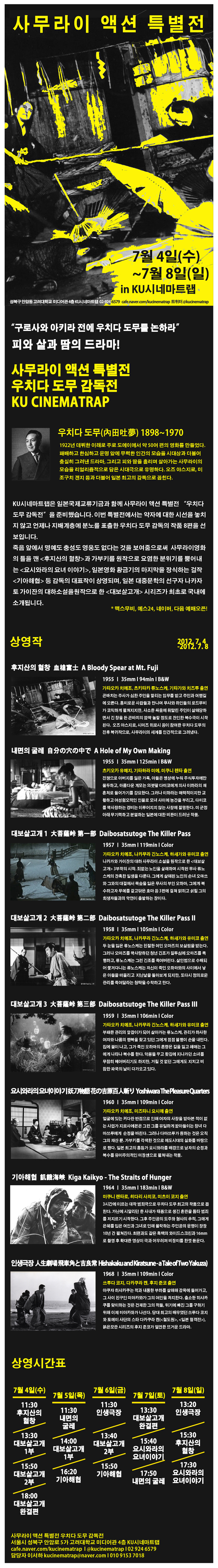 사무라이 액션 특별전 7월 4일 (수)~ 7월 8일 (일) 고려대학교 미디어관 4층 KU시네마 트랩