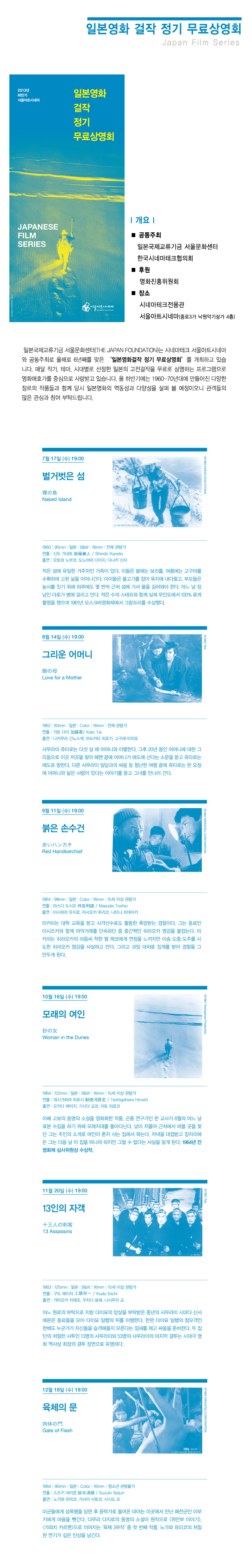 년째를 맞은 ‘일본영화걸작 정기 무료상영회’를 개최하고 있습니다