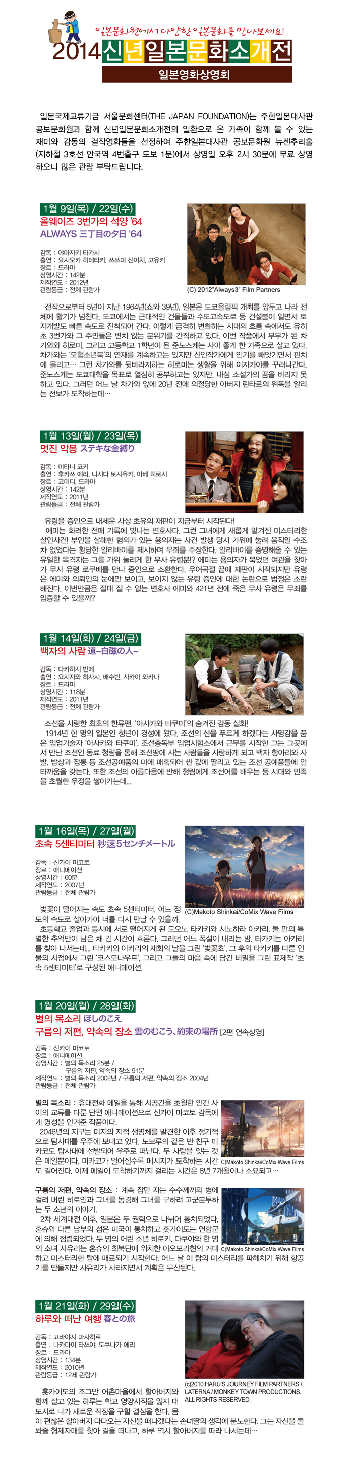 보다 자세한 사항은 http://www.kr.emb-japan.go.jp/cult/movie_info_2014_01.htm 를