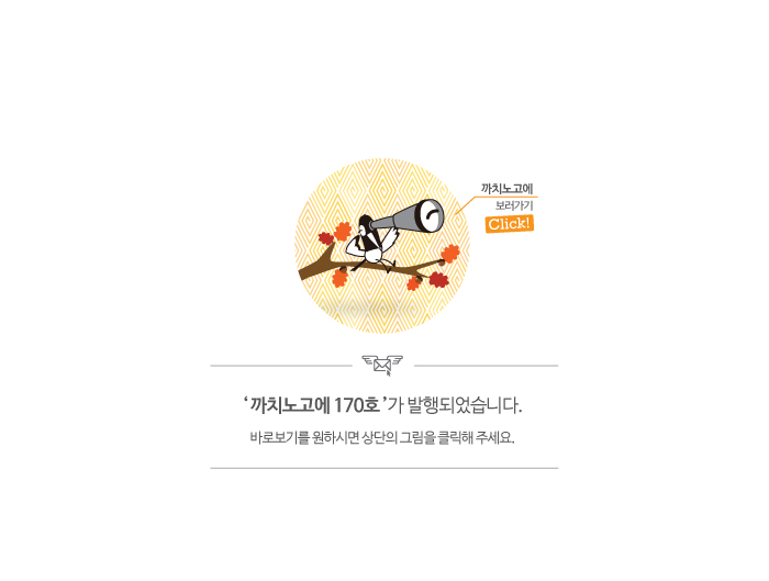 까치노고에 170호가 발행되었습니다. 바로보기를 원하시면 상단의 그림을 클릭해 주세요.
