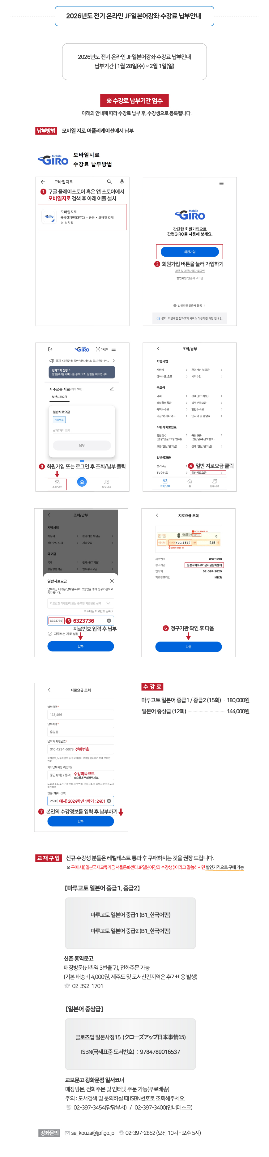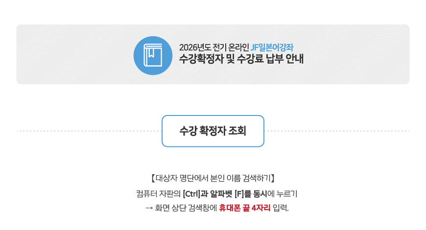 2025년도 후기 JF일본어 강좌 강좌 수강 확정자 및 수강료 납부 안내