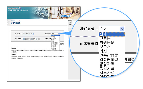 자료 유형은 전체, 단행본, 학위논문, 보고서, 기사, 연속간행물 등을 보실 수 있으며 여기서는'전체'를 살펴보도록 하겠습니다.