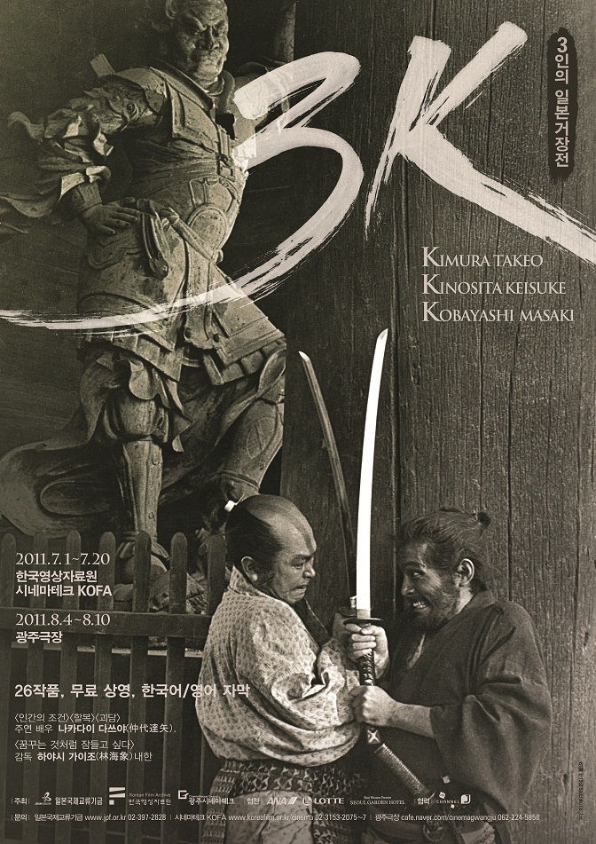 한 시대를 풍미한 감독임에 불구하고 한국에서 조명을 받지 못한 고바야시 마사키 감독, 기노시타 게이스케 감독, 기무라 다케오 감독(미술감독이기도 함)의 작품 총 26편을 집중 소개하고자 합니다.