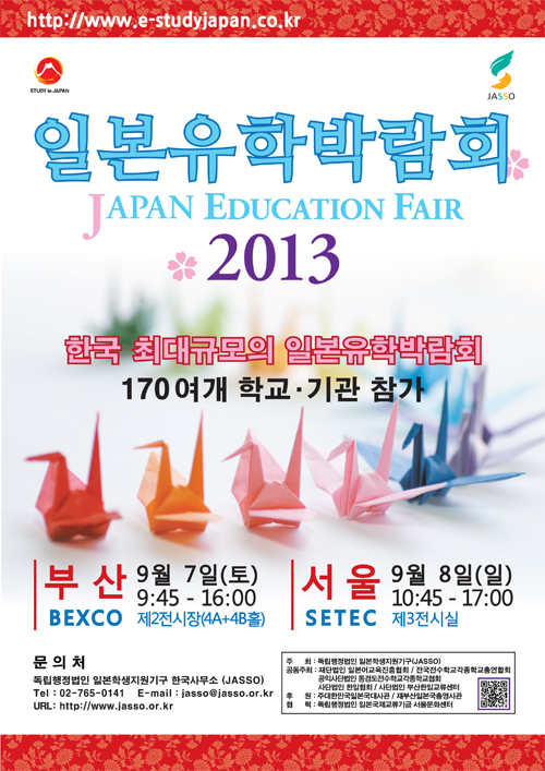 2013년도 일본유학박람회가 아래와 같이 개최되오니, 일본유학에 관심 있는 여러분들의 많은 참가 바랍니다.