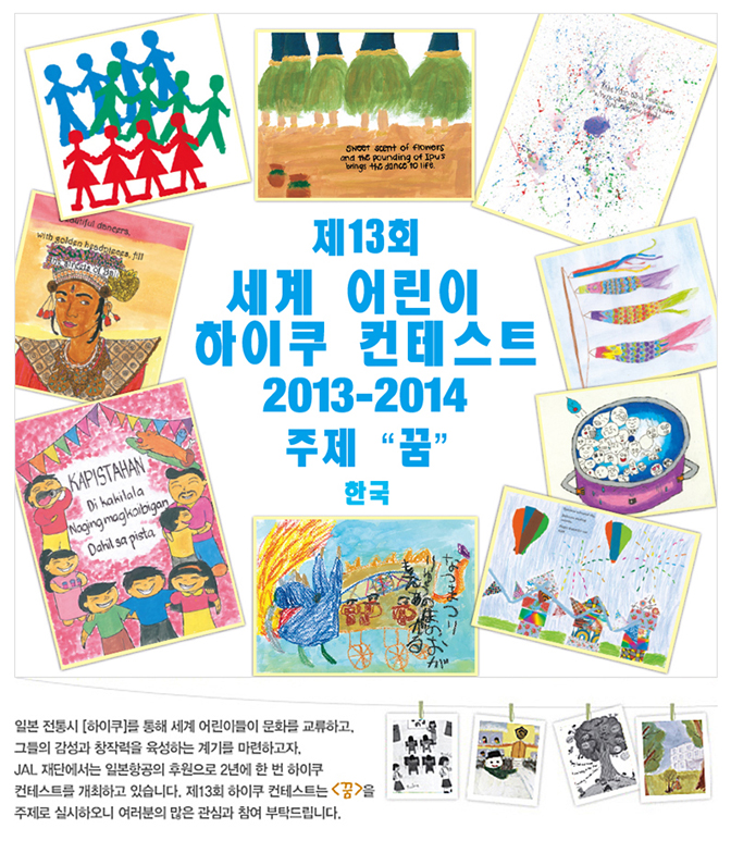 JAL(일본항공)재단에서는 세계 어린이들의 문화교류를 목적으로<제13회 세계어린이하이쿠콘테스트>를 아래와 같이