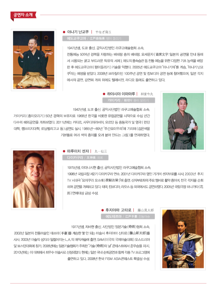 | 일본의 전통 예능 한국공연 – 전승되는 에도의 기예 |