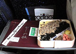 이 닭고기 육수로 지은 밥 위에, 잘게 부순 닭고기와 가늘게 썬 구운 달걀, 김 가루 등을 얹어 만든 도시락이 바로「가시와메시」이다. 이「가시와메시」는 후쿠오카현 내의 여러 역에서 팔고 있지만, 2002년 도쿄의 백화점에서 열린 에키벤 대회*1에서 이곳「가시와메시」가 동북지방의 에키벤 중 제일 인기가 있었다.