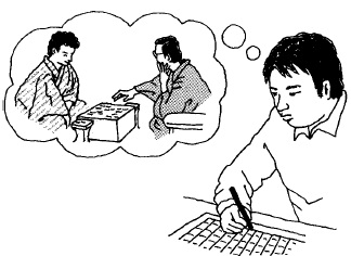 나는 아직도 손으로 직접 고쿠요의 원고용지에 하나씩 써내려간다. …(중략)…. (나는) 늘 ‘장기 기사는 눈이 생명이다. 컴퓨터를 장시간 보고 있으면 피곤해지기 때문에 손으로 직접 쓴다’고 이야기한다.