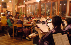 | ▲ 고교생들의 샤미센 연주에 취해있는 호주인들 |
