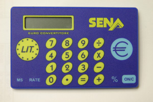 | ▲ 유로, 리라 환산용 계산기. 유로가 도입되었을 때 정부가 각 가정에 무상 배포함 |