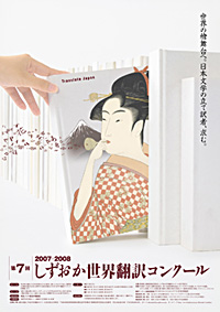 제7회 시즈오카 세계 번역 콩쿠르 포스터. 응모는 2008년 12월10일로 마감되며 수상식은 2009년 가을 시즈오카현에서 거행될 예정. |