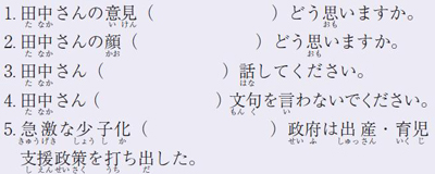 1. 다나카씨 의견(       ) 어떻게 생각합니까?