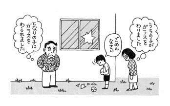(1) となりの子にガラスをわられました。