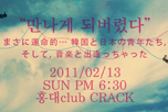 • 「음악X창업X사회공헌」 한일 젊은이 의기투합!! 2/13(일) 한일청년「합작회사」Ralapipo 홍대클럽에서 라이브공연   일본국제교류기금(The Japan Foundation)은 2009년에 설립된 일본NPO법인 블래스트비트, 한국 사회적기업 노리단청년네트워크팀과 협력하여,언어와 문화가 서로 다른 한일의 대학생이 함께 진행하는 블래스트비트 프로그램인 국제협동프로젝트를 실시하고 있습니다.   이 프로젝트의 최종 목표는 학생들이 한일 양국에서 음악이벤트를 성사시키고, 그 수익의 25%이상을 자신들이 선택한 사회공헌사업에 기부하는 것입니다. 한국과 일본에서 제로의 상태에서 하나의 사업을 일구는 창업체험을 통하여 학생들간의 강한 유대감 형성은 물론 글로벌시대의 공통과제를 안고 있는 현대사회 속에서 살아 나갈 힘을 기르는 프로그램입니다.         ■일   시    2/13(일), PM 6:30 ■장   소    홍대 CLUB CRACK ■입장료    인터넷예매: 20,000원/현장구매: 22,000원                 http://ralapipo.tistory.com/   본 프로젝트로 탄생한 한일청년 합작회사 Ralapipo는 회사창업에서 공연기획에 이르기까지 험난했던 과정을 이겨내고 드디어 오는 13일 홍대 클럽무대를 밟습니다. 본 공연에는 Ralapipo의 공연 이외에 굴 소년단, 모니, 아마츄어 증폭기, 한희정, 사토유키에의 게스트들                                        이 이들의 첫무대를 지원합니다. 「음악×창업×사회공헌」을 동시에 경험한 이들의 공연에서 우리들은 뜨거운 감동과 환희를 느낄 수 있을 것입니다.   ※블래스트비트(blastbeat)란,「음악×창업×사회공헌」에 도전하는 젊은 인재를 기르는 생생한 체험형 교육프로그램으로, 2003년에 아일랜드에서 설립, 현재 5개국, 통산 200곳 이상의 고교와 대학에서 프로그램을 실시하고 있다.