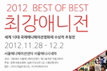 • 일본국제교류기금 서울문화센터(THE JAPANFOUNDATION)이 후원하는 <2012 최강애니전>이 오는 11월 28일(수)부터 12월 2일까지 닷새 간 서울애니메이션센터 내 서울애니시네마에서 개최됩니다.                       상영일정 다운로드 _  2012최강애니전 상영일정을 다운로드 받으실 수 있습니다.                          문의 : 서울애니시네마 02-3455-8341~2 / 애니충격전 02-923-4308~9                        보다 자세한 사항은 아래 홈페이지를 참조하시기 바랍니다.                      http://www.animpact.org/animpact2011/html/sub_2/list.htm?SubPage=1&SiteLang=