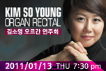 • 일본국제교류기금 서울문화센터(JAPAN FOUNDATION)가 후원하는 <김소영 귀국 오르간 독주회>가 오는 1월 13일(목) 오후 7시 30분 영상아트홀에서 개최됩니다. 김소영 씨는 <제1회 한일젊은음악가교류콘서트>때 파이프오르간 연주를 선보여 큰 호응을 얻은 바 있습니다. 이번에 스위스에서 귀국하여 첫 오르간 독주회를 개최이므로 많은 분들의 관심 부탁 드립니다.       ***보다 자세한 공연 문의는 KMS공연기획 031-955-6982 www.kms4u.co.kr 참조하십시오.