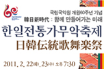 • 국립국악원 개원 60주년을 기념하고 일본국제교류기금이 추진하는 [韓日新時代: 함께 만들어 가는 미래] 사업의 일환으로 한일 양국의 전통음악과 무용을 선보이는 「한일전통가무악축제」가 열립니다.   한국과 일본은 각각 가곡(성악곡)과 무용을 준비하였으며, 이번 공연의 하이라이트라고 할 수 있는 제3부에서는 처음으로 일본의 '야치요지시(八千代獅子)'와 한국의 '염불도드리' 를 함께 무대에 올려 협연하게 됩니다.관심 있는 분들의 많은 관람 바랍니다.     ◈일 시   서울공연 2010년 2월22일(화)_23일(수) 오후7:30             부산공연2010년 2월 25일(금) 오후7:30◈장 소   국립국악원 우면당, 국립부산국악원 예지당◈주 최   국립국악원, 일본국제교류기금◈후 원   문화체육관광부, 주한일본대사관 공보문화원, 재부산일본국총영사관◈협 력   新日鐵文化財團◈관 람   무료(사전예약자에 한함)◈문 의   국립국악원(02-580-3300) 국립부산국악원(051-811-0043)   * 티켓예매 및 자세한 사항은 다음 홈페이지를 참조하여 주시기 바랍니다.  국립국악원 http://www.gugak.go.kr 국립부산국악원 http://www.ncktpab.go.kr